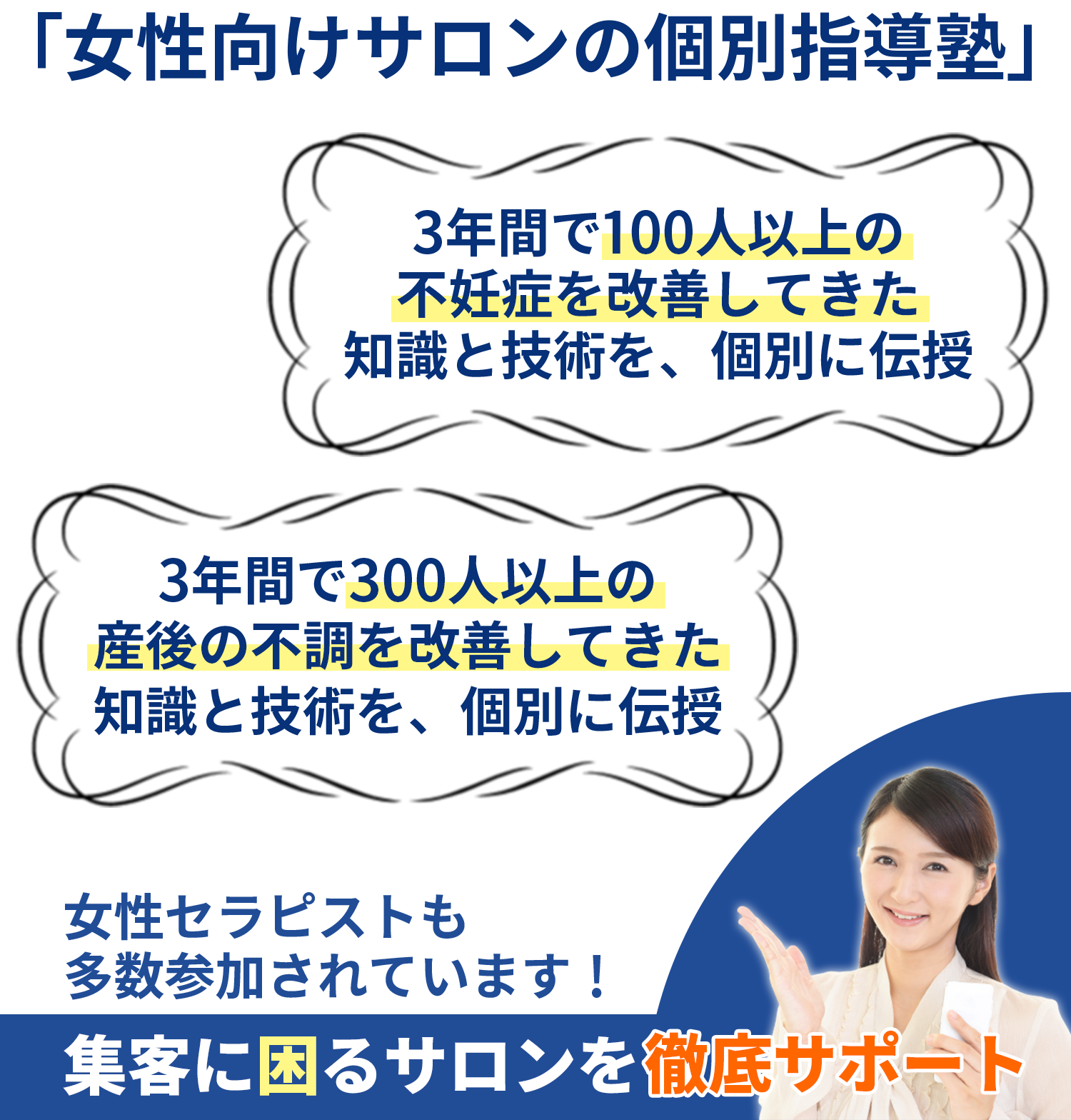 女性客だけで月間売上200万円を突破 不妊のお悩みを抱えた女性を12ヶ月連続10人集客 女性リピート率 90%以上 女性平均LTV20万円 の実績!!